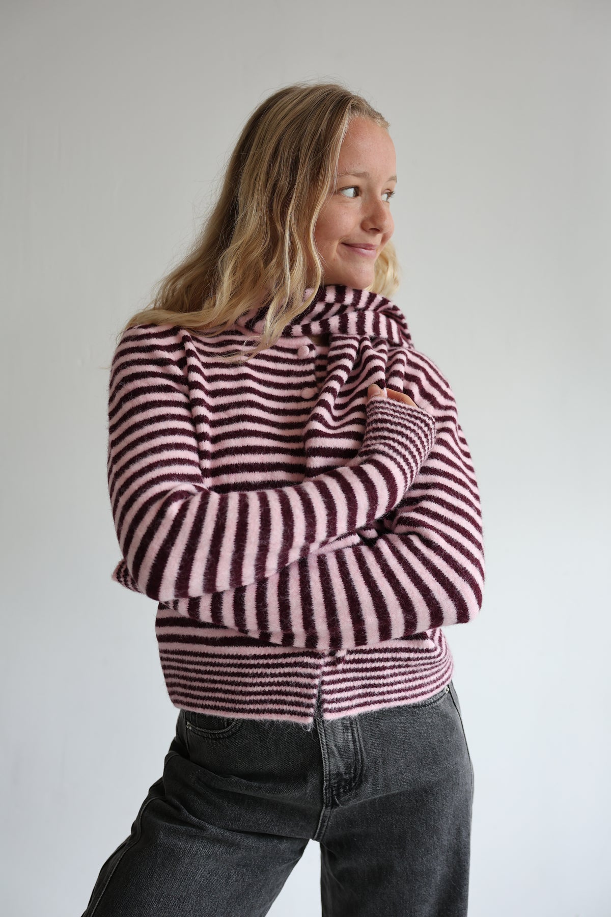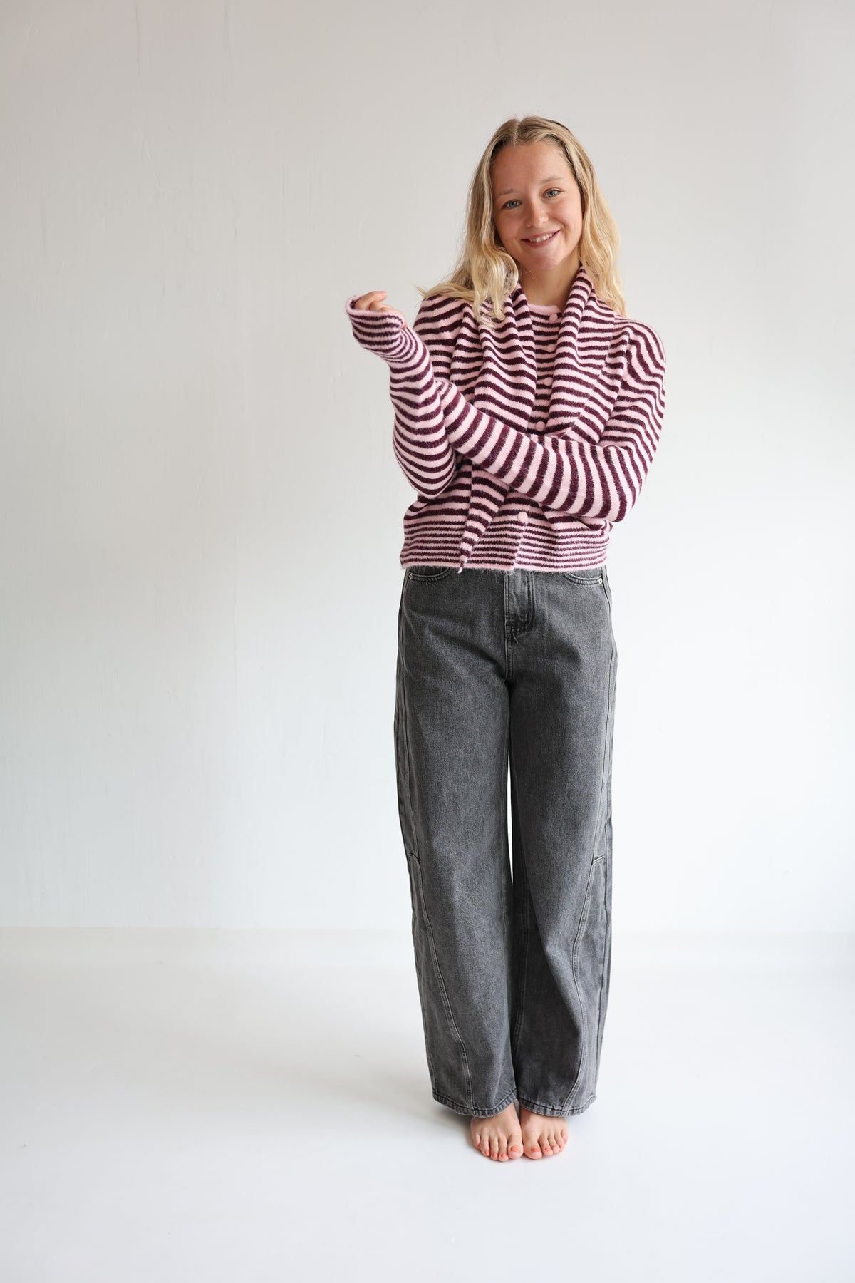 • Cardigan mit Streifen und Schal