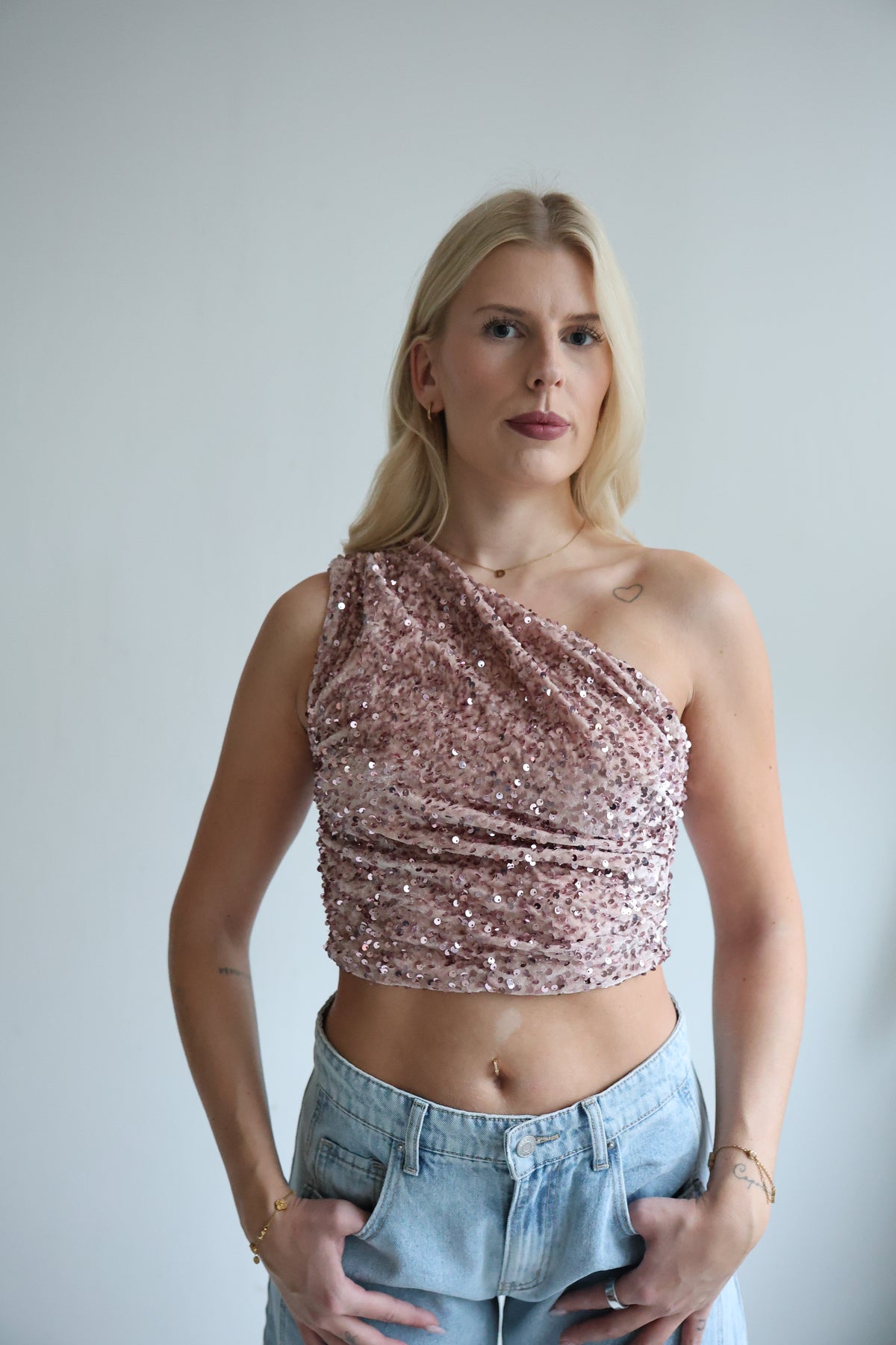 • Wunderschönes One Shoulder Top mit Pailetten besetzt