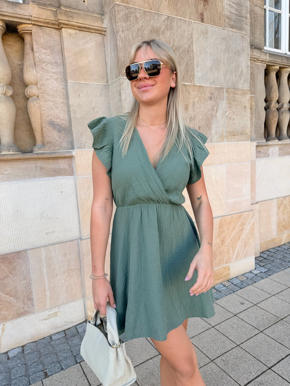Kurzes Musselinkleid mit Rüschenärmeln Joy