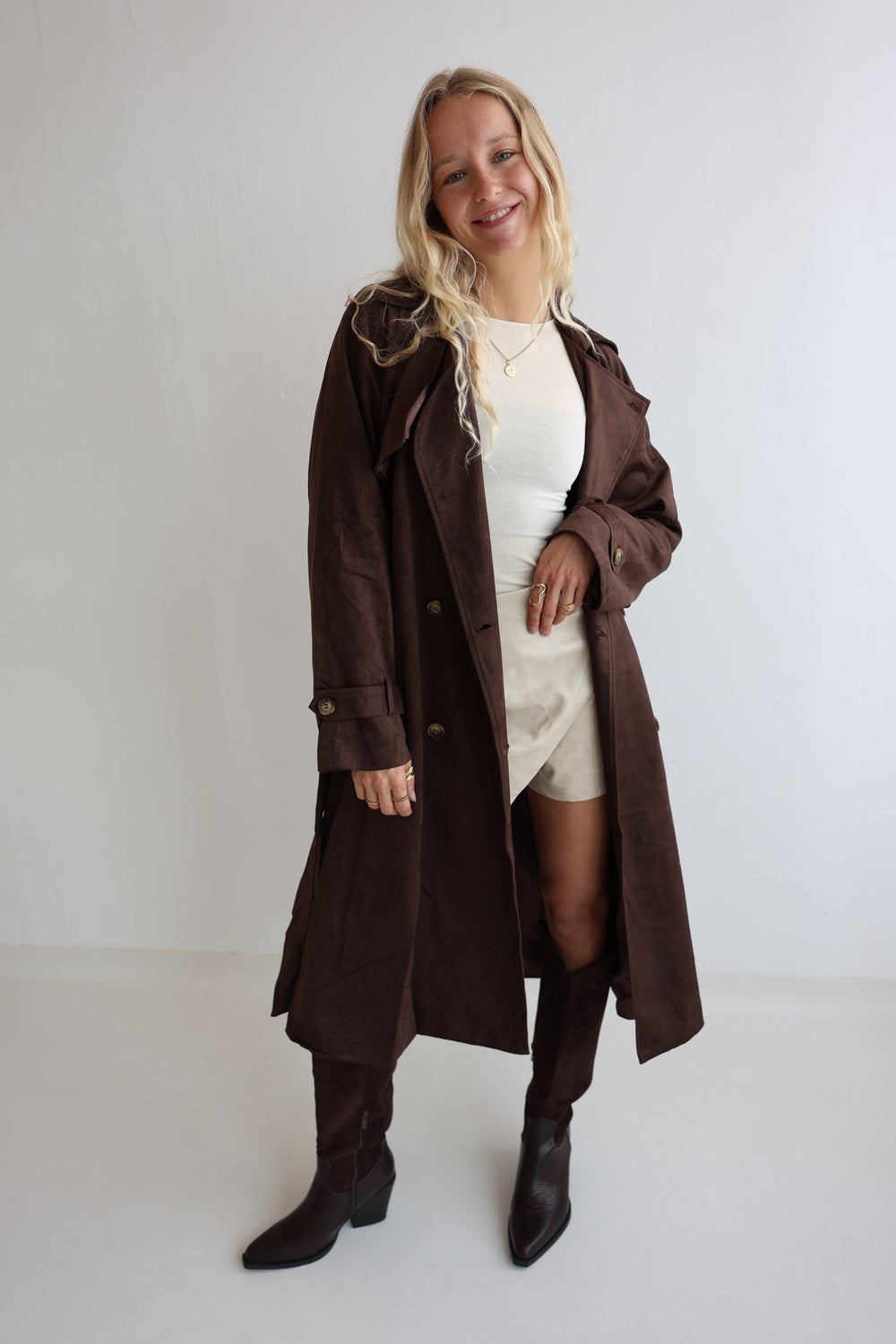 Longline Faux Suede Coat
