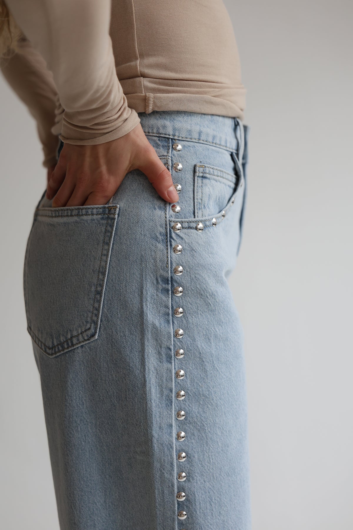 • Nieten in Silber zieren das Hosenbein, sowie die Hosentaschen