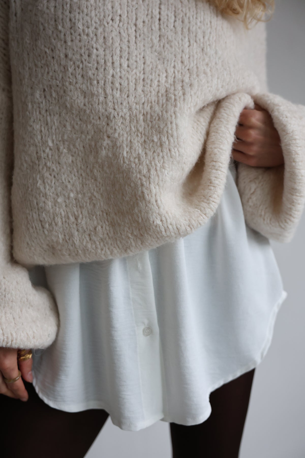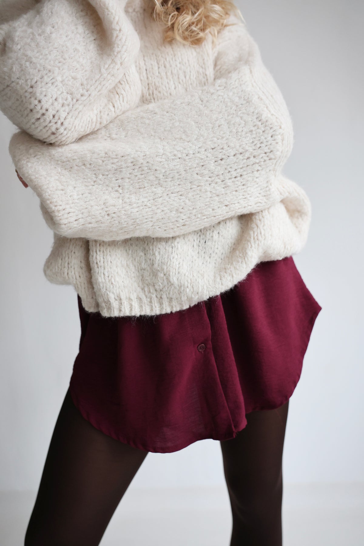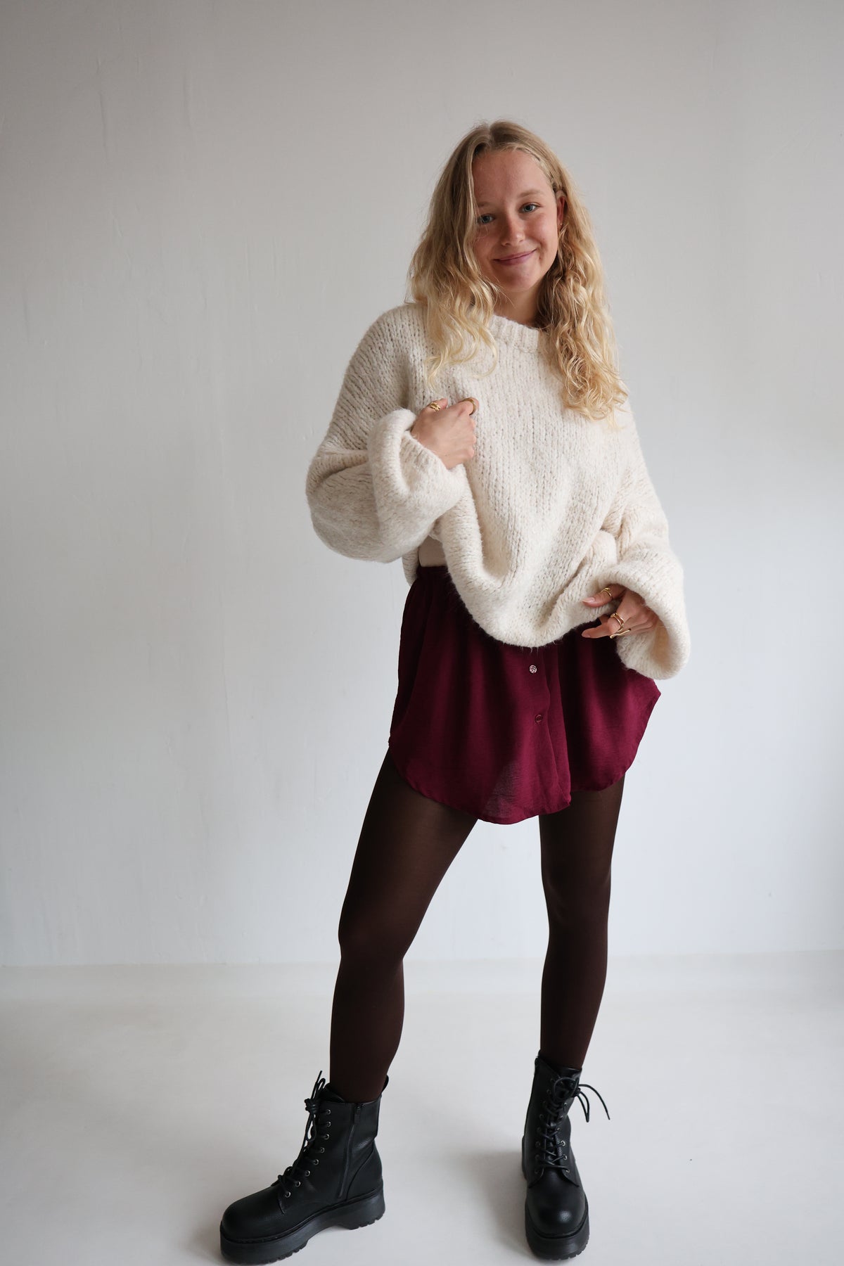 - erzeugt den Effekt, dass es so aussieht, als würde man eine Bluse unter dem Pullover tragen