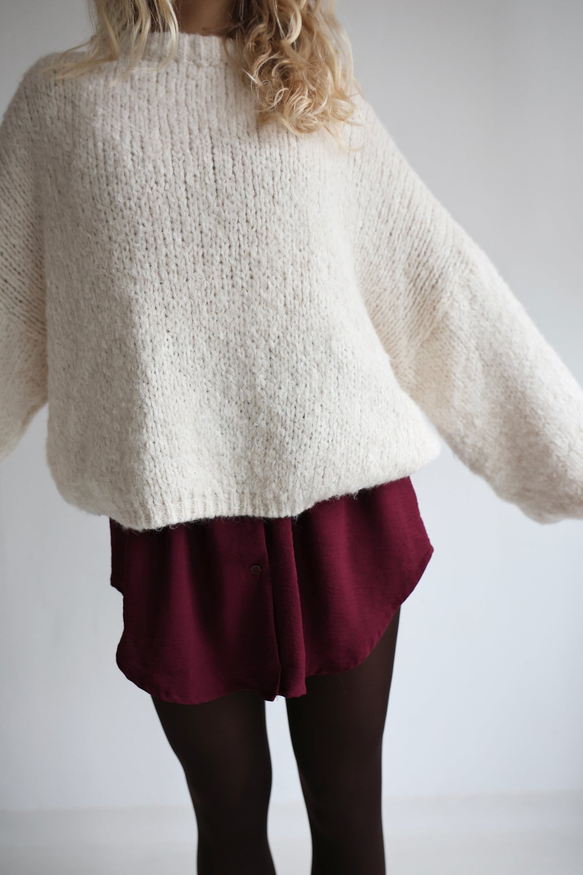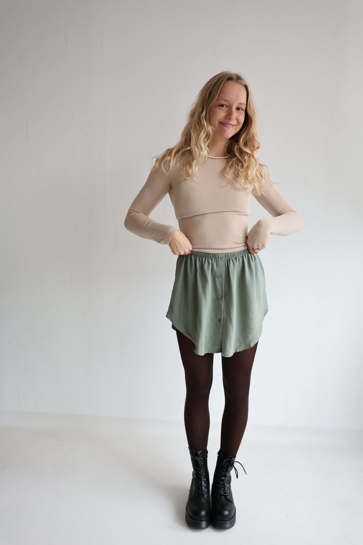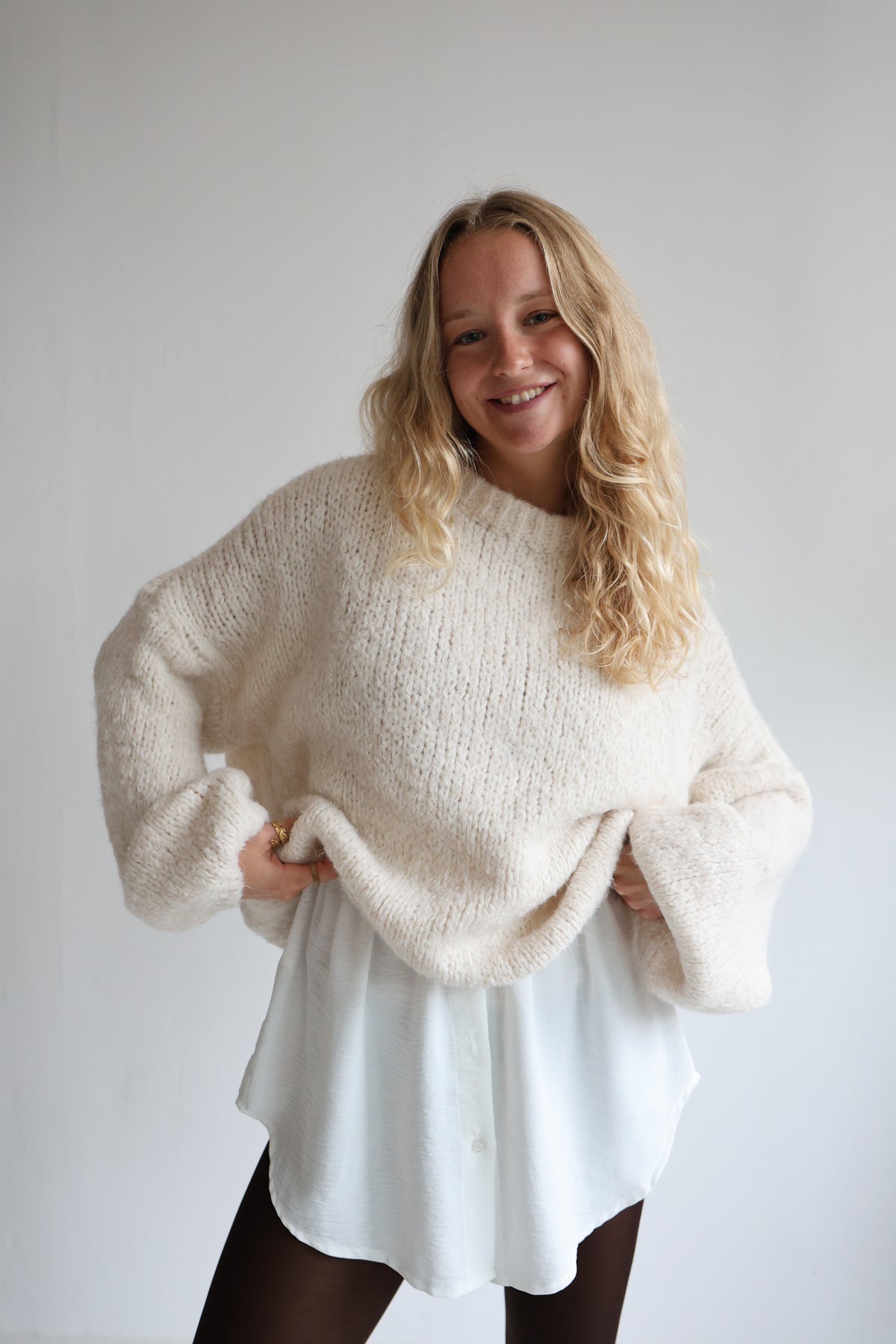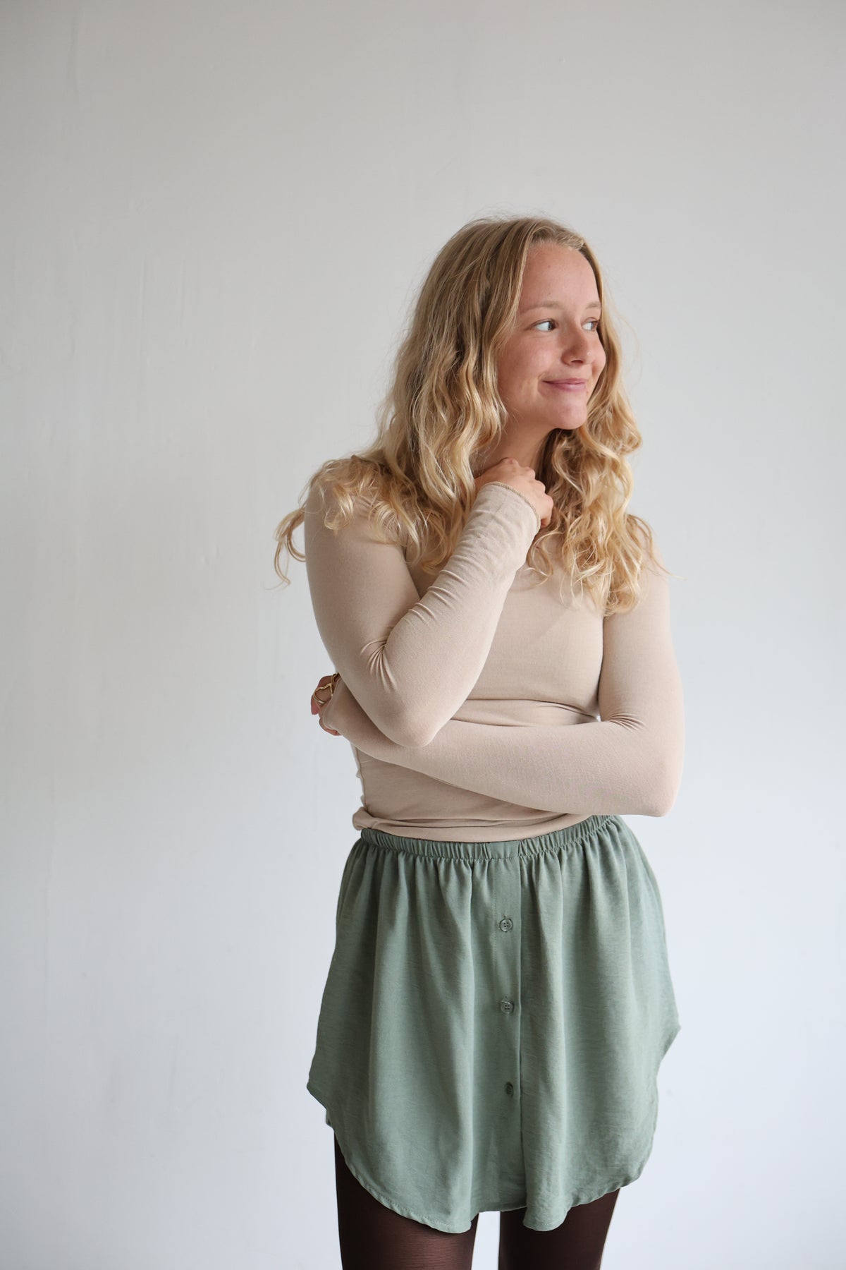 - erzeugt den Effekt, dass es so aussieht, als würde man eine Bluse unter dem Pullover tragen