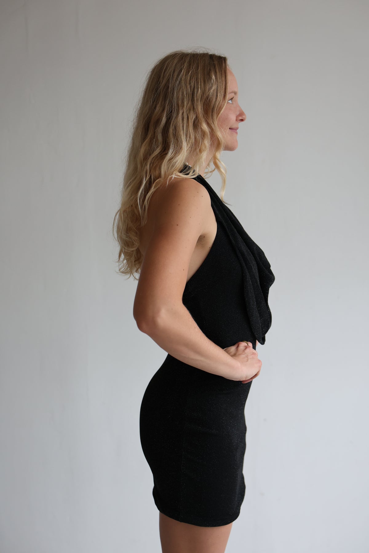 - Kurzes Kleid mit Wasserfallausschnitt