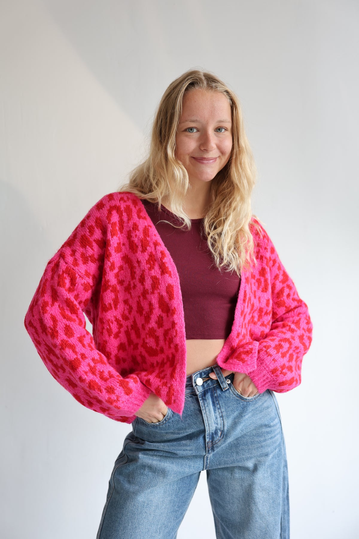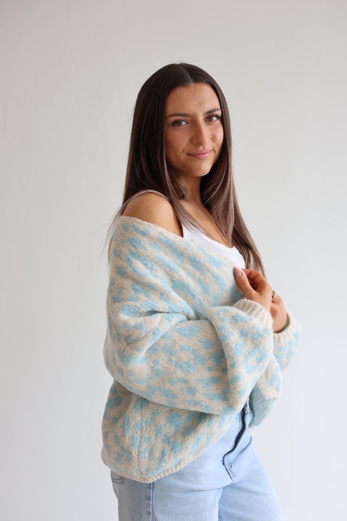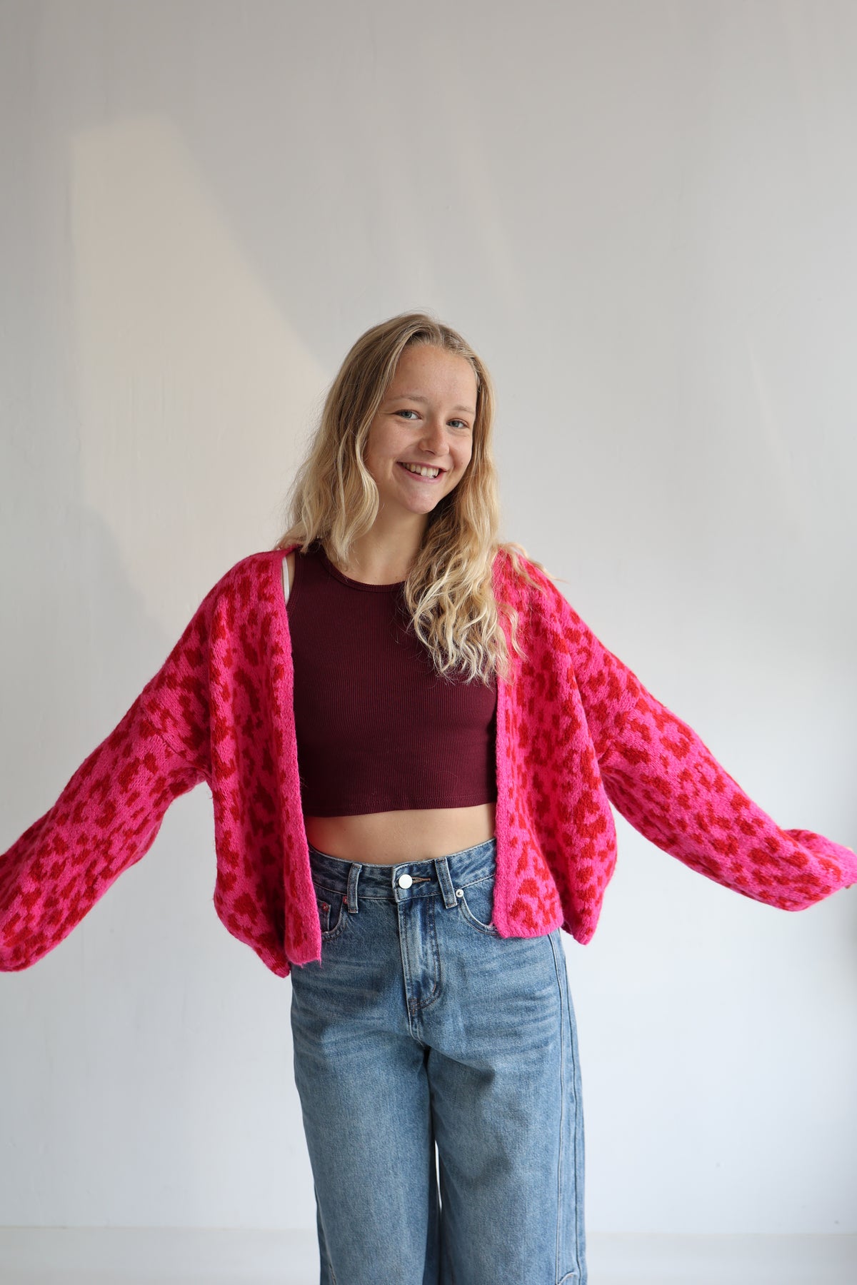 • offener Cardigan mit Leoprint