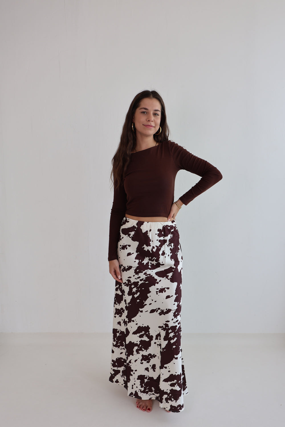 • Wunderschöner langer Rock in Satinoptik mit Kuhprint