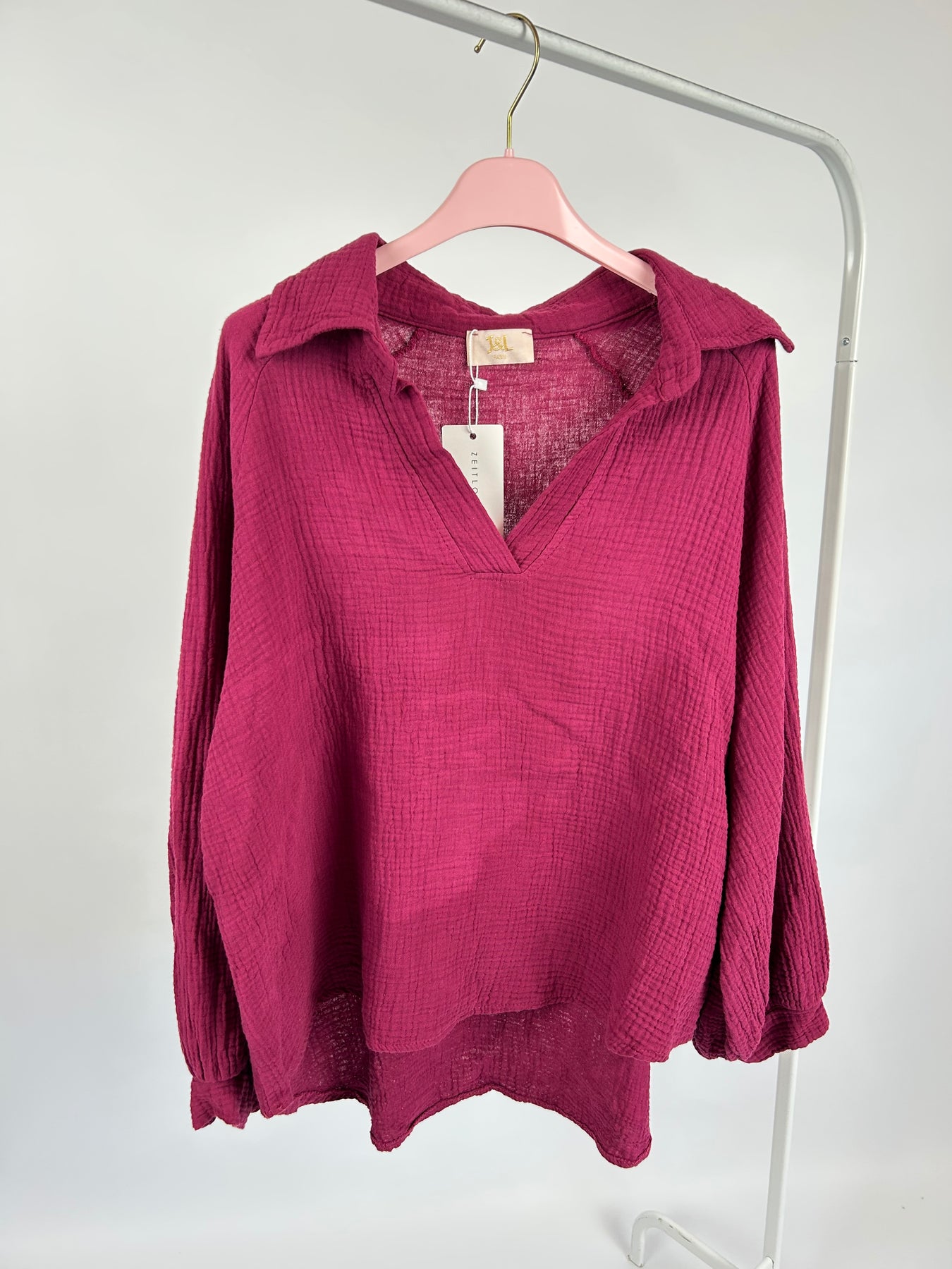 SCHLUPFBLUSE AUS MUSSELIN CHLOE TRAUBE EINHEITSGRÖSSE (B-WARE)