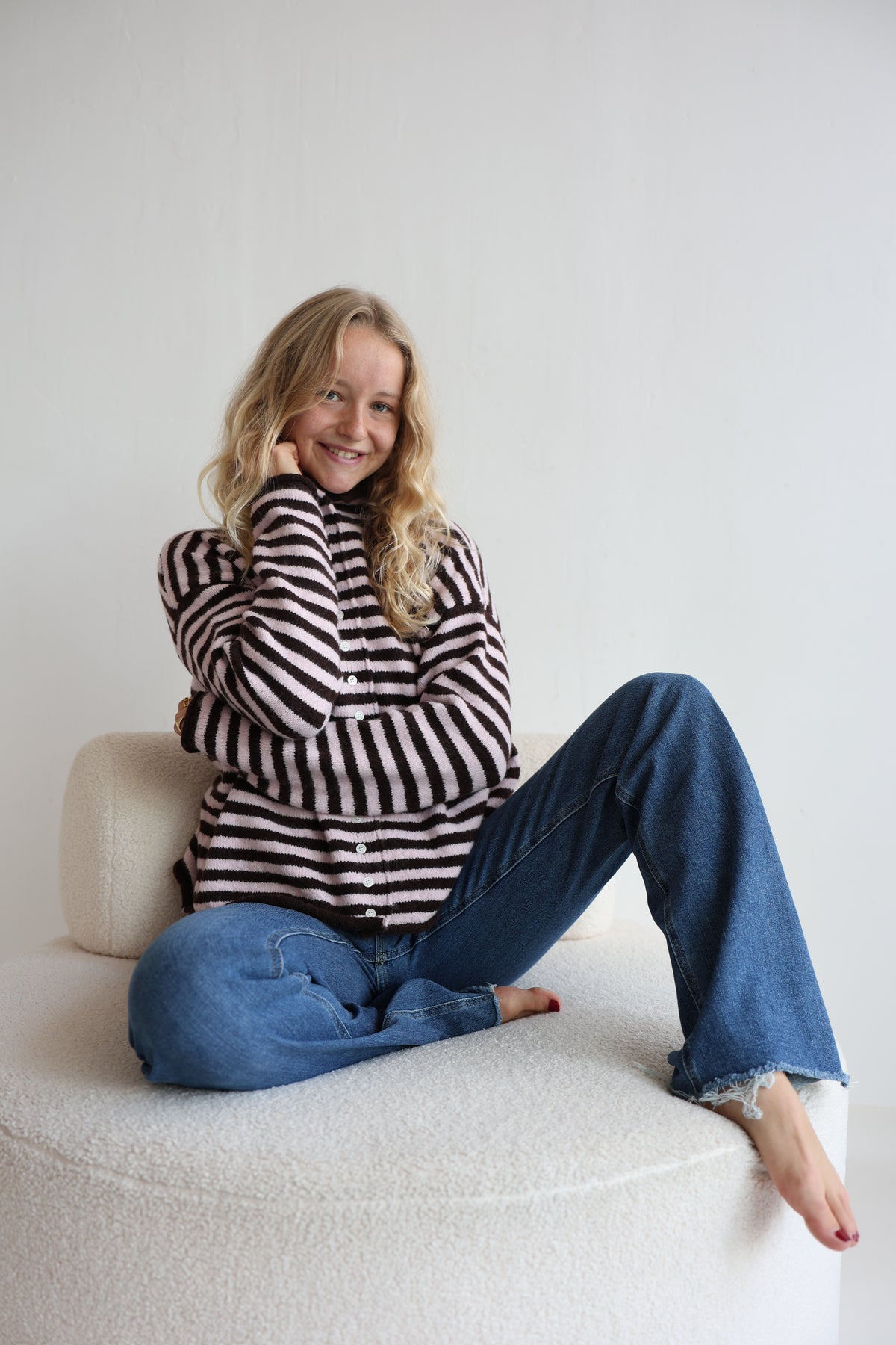 • weicher und kuscheliger gestreifter Cardigan