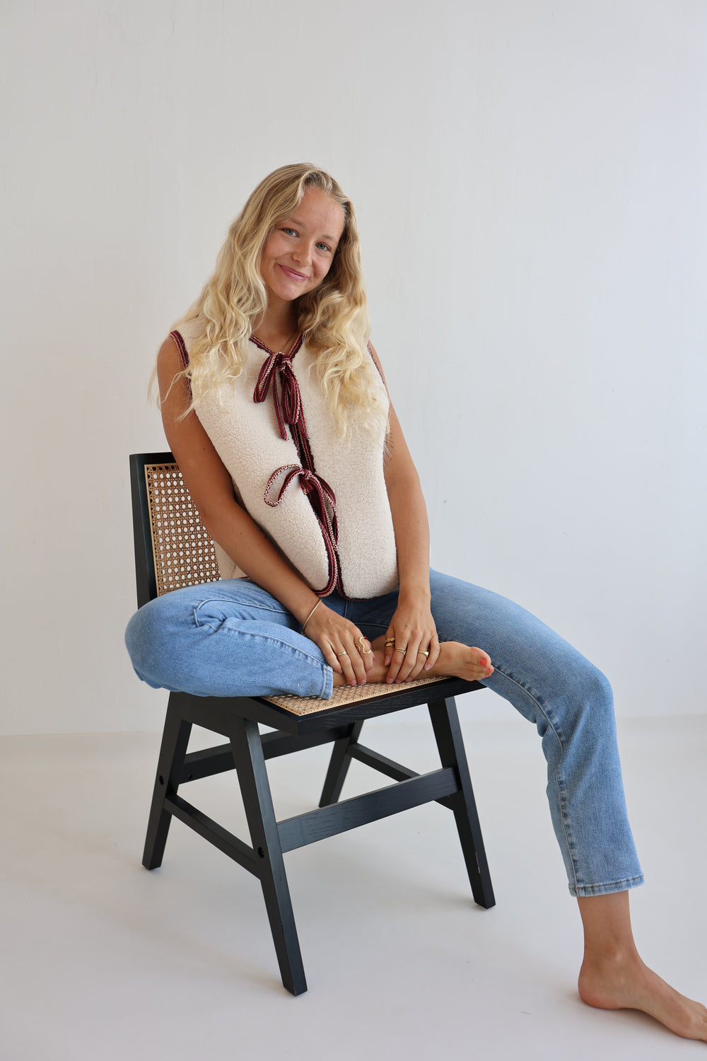• kann an der Vorderseite mit Schleifen zusammengebunden werden